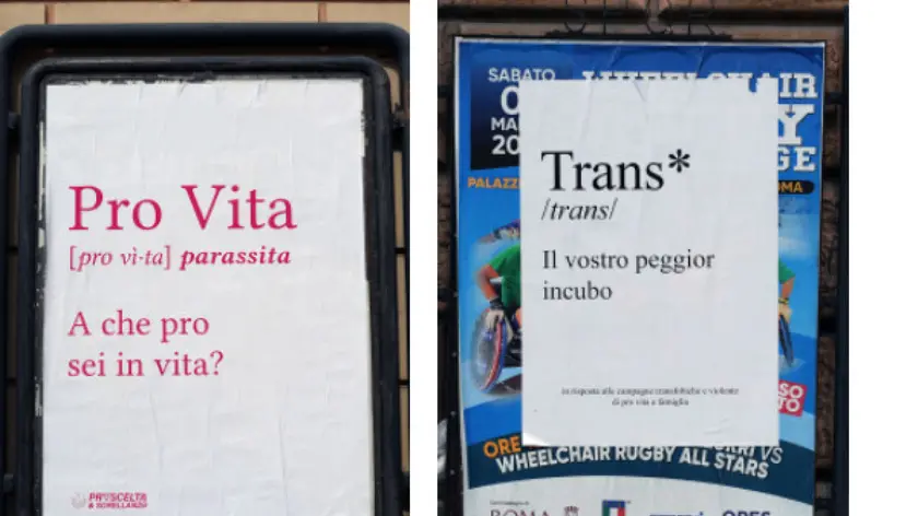 (ANSA) - ROMA, 09 MAR - "Le sedi di pro vita si chiudono col fuoco ma coi pro vita dentro sennò è troppo poco. E se un provita muore: champagne! E se non muore: molotov!". Sono cori intonati contro Pro Vita & Famiglia durante il corteo per l'8 marzo organizzato, tra gli altri, dal collettivo transfemminista di "Non Una Di Meno". "Immaginiamo la scena a parti invertite - commenta l'associazione in una nota -, se dei manifestanti pro life avessero rivolto minacce di morte ad associazioni transfemministe o Lgbt. Sarebbe scoppiato uno scandalo nazionale, con titoli di apertura su tutti i giornali e i vari Schlein, Zan, Conte, Gualtieri e Boldrini si sarebbero stracciati le vesti. Dove sono ora? Non hanno nulla da dichiarare contro questo odio? Se non condanneranno queste violenze - come purtroppo non hanno mai fatto nei tanti attacchi che abbiamo subito in questi anni - ammetteranno che l'uguaglianza vale solo per chi la pensa come loro". Nelle strade adiacenti alla sede, sono inoltre comparsi dei manifesti del collettivo "Pro Scelta e Sorellanz3", che scimmiottano i cartelloni originali di Pro Vita & Famiglia sulla definizione, da dizionario, di "Donna". Tra i messaggi: "Pro Vita parassita a che pro sei in vita?"; "Donna: chi ce se sente" - riferimento all'autopercezione di genere -, "Trans*: il vostro peggiore incubo" e un attacco al diritto all'obiezione di coscienza. "Solo il presidio costante delle forze dell'ordine - aggiunge l'associazione - ha impedito ai manifestanti di avvicinarsi fisicamente alla sede e far degenerare la situazione". (ANSA).