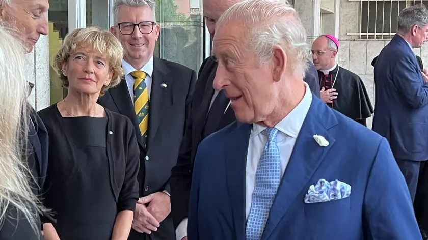 (ANSA) - ROMA, 23 OTT - Un tè pomeridiano prima di rientrare nel Regno. Re Carlo III nella sua ultima tappa della seconda giornata della visita di Stato a Roma, dopo la visita in Vaticano e alla Basilica di San Paolo, ha partecipato ad un ricevimento presso il Pontificio Collegio Beda. Accompagnato dalla regina Camilla è stato ricevuto da monsignore Mark Cassidy, rettore del Pontificio collegio scozzese, da monsignore Marcus Holden, rettore del Pontificio collegio Beda, dal vicecapo della missione dell'ambasciata britannica presso la Santa Sede Anabel Inge e dall'ambasciatore del Regno Unito presso la Santa sede, Christopher Trott, Sua Maestà ha partecipato ad un ricevimento nei giardini del complesso dove ha incontrato diverse personalità religiose fra cui alcuni gruppi di sacerdoti tirocinanti provenienti da tutto il Commonwealth, ma anche cittadini britannici che lavorano in Vaticano, conversando amabilmente con loro mentre teneva una tazza di tè in mano. Parallelamente la regina Camilla incontrava alcune religiose. Il re ha poi scoperto una targa commemorativa della sua visita - durata all'incirca una quarantina di minuti -e a conclusione ha annaffiato un albero di arance, piantato in occasione della visita. Il Pontificio Collegio Beda è un seminario per la formazione dei sacerdoti del Commonwealth e la sede temporanea del Pontificio Collegio Scozzese, il seminario per la formazione dei sacerdoti per la Scozia. (ANSA).