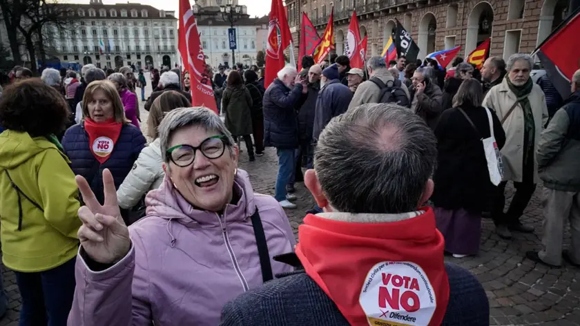 (ANSA) - TORINO, 23 MAR - Il "no" al referendum costituzionale sulla giustizia è sceso in strada a Torino nel tardo pomeriggio con una manifestazione indetta da Potere al popolo e dal Partito della Rifondazione comunista. Oltre centocinquanta persone si sono ritrovate in piazza Castello, di fronte alla Prefettura, con bandiere anche di Usb, quella arcobaleno della Pace, qualche collettivo universitario, come il Cua, e bandiere della Palestina e di Cuba. Al centro hanno steso uno striscione con la scritta: "Meloni: dimissioni!", firmato "Comitato No Sociale", mentre sono stati pronunciati slogan analoghi contro la premier. Presenti anche rappresentanti del Pd, tra cui il segretario regionale del partito, Domenico Rossi, e la capogruppo in Regione, Gianna Pentenero, con delle bandiere. Una delle bandiere è stata poi strappata da alcuni militanti di Potere al popolo, che per breve tempo hanno scandito: "Fuori il Pd dal presidio". (ANSA).