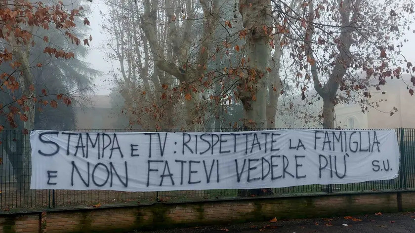 LODI, 16 GEN - "Stampa e tv rispettate la famiglia e non fatevi vedere più". E' quanto si legge su un lenzuolo-striscione affisso la notte scorsa lungo la cancellata del parco pubblico che si trova davanti al ristorante 'Le Vignole' di Sant'Angelo Lodigiano. Il locale era gestito da Giovanna Pedretti, la 59enne trovata morta nel Lambro domenica scorsa dopo le critiche che si erano scatenate sull'autenticità di una recensione del suo locale. Ieri la figlia della donna aveva fatto un appello, rilanciato dagli amici sui social, per invitare i giornalisti ad andarsene dalla strada dove si trovano sia la pizzeria sia l'abitazione della famiglia perché "siamo assediati". (ANSA).