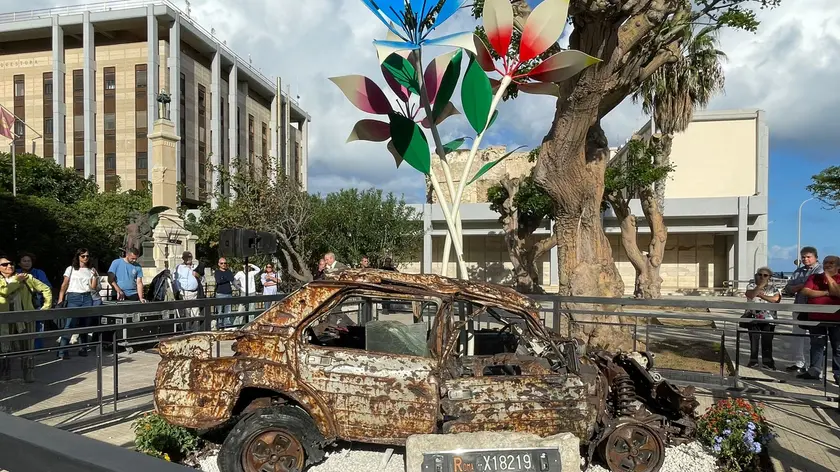 Rottame auto attentato Pizzolungo in piazza, opera a memoria