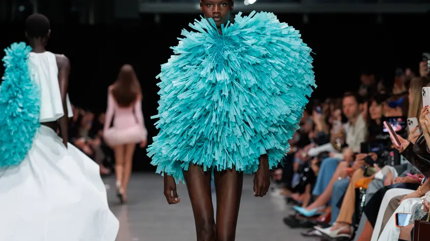 (ANSA) - ROMA, 01 OTT - Unisciti a noi per l'umanità, gli animali e la Madre Terra: è il messaggio dall'eredità musicale e di attivismo che ha aperto la sfilata della collezione Estate 2026 di Stella McCartney, presentata nel Centre Pompidou nell'ambito della settimana della moda di Parigi. L'apertura dello show è stata affidata all'attrice premio Oscar Helen Mirren che ha narrato il testo dell'omonima canzone dei Beatles, trasformando un inno in un manifesto. La donna Stella Estate 2026 è un riuscito mix di maschile e femminile. Il suo guardaroba è quello dei contrasti architettonici e della convivenza con la natura, realizzato con materiali al 98% consapevoli e 100% cruelty-free. La collezione è priva di pelle, piume, pellicce e pelli esotiche. Ma all'apparenza sembra esserci tutto questo, affidato esclusivamente ai materiali ecologici e alle lavorazioni. La collezione introduce infatti due novità: Fevvers, alternativa vegetale alle piume, leggera, stratificata e piena di movimento, adatta ad animare gli abiti con corsetto; Puro. Tech, primo materiale programmabile che assorbe e neutralizza gli inquinanti, tra cui CO₂ e NOx, convertendoli in composti innocui che Stella applica al denim destrutturato, pulendo attivamente l'aria mentre viene indossato. La palette comprende teneri rosa, lavanda, blu, kaki terroso, grigio aziendale e pecan. I pantaloni cargo utilitaristici e corti sono in cotone fresco con orli ariosi in crinolina. La linea Savile Row mostra giacche doppiopetto tagliate ai lati, con spalle importanti e revers scesi, indossate con pantaloni a gamba larga plissettati e abbinate a camicie sportive d'ispirazione anni '80, bomber e maglie leggere. Sfilano jeans ricamati a mano, scarpe, borse, abitini con maniche ad ali camicie in paillettes, borse Falabella e jeans ricamati a mano. L'abbigliamento da sera presenta silhouette scultoree, corsetti e long dress fluidi in raso lucente e tulle. La stampa Spiral Cornflower che anima abiti e spezzati, viene disegnata, dipinta e ricamata nell'atelier londinese di Stella. Le maglie in rafia e le frange applicate a mano aggiungono consistenza e volume. (ANSA).