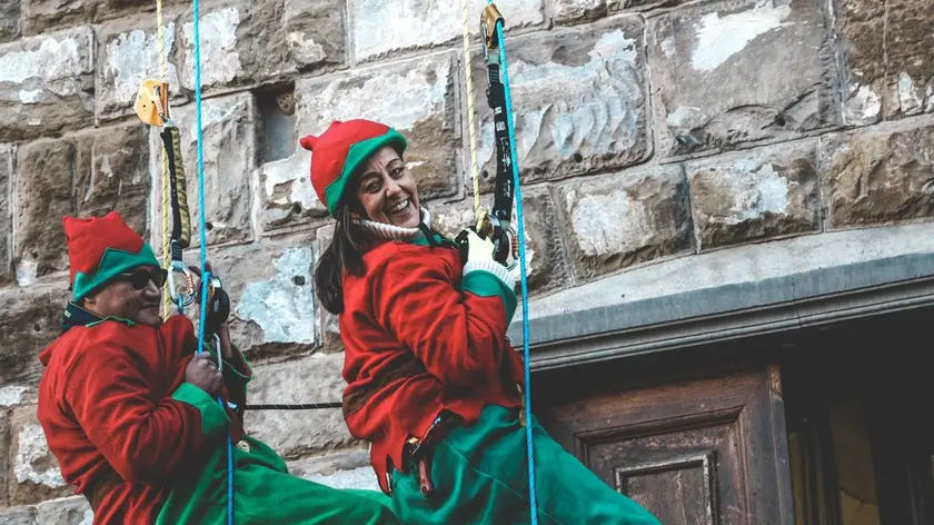 FIRENZE, 15 DIC - Babbo Natale a Firenze si è calato dalla facciata di Palazzo Vecchio, in piazza della Signoria, per portare caramelle e doni ai bambini che lo aspettavano. E stesso gesto, indossando una tuta da elfa, lo ha fatto anche la sindaca Sara Funaro, in un'iniziativa promossa dalla Confcommercio per annunciare le festività. Funaro, in abiti rossi e verdi e cappello con gli stessi colori, è discesa dal terrazzino in cordata con altri umili di Babbo Natale. "Viviamo la magia della festa, incontriamo tante famiglie fiorentine che camminano nelle strade e nelle piazze del centro e di ogni quartiere assieme a chi è in visita alla nostra città - dice Funaro anche sui social - E' una domenica speciale che dedichiamo ai bambini e alle bambine della città". "Per festeggiare al meglio questo Natale - sottolinea ancora - tutta Firenze si è messa insieme con mille iniziative diffuse in ogni luogo, ci sono luci, colori e suoni per ogni età, tante esperienze da fare per tutti a partire dai più piccoli. In tutto questo è fondamentale il protagonismo del tessuto commerciale, di ogni singolo commerciante, dei centri commerciali naturali e delle associazioni di categoria che con sapienza e professionalità si impegnano, dimostrano il loro attaccamento a questa nostra città bellissima e organizzano eventi di qualità davvero alta. Domenica 15 dicembre Babbo Natale si cala dalla facciata di Palazzo Vecchio, lunedì 6 gennaio la Befana scenderà in piazza della Repubblica: siete tutti invitati, se possibile vi faremo una sorpresa, siete tutti invitati!". Il 19 dicembre altra iniziativa di Sara Funaro per gli auguri di Natale alla alla città, alle ore 18 nel salone dei Cinquecento. Nell'occasione ci sarà un concerto del nucleo orchestrale delle Piagge della Scuola di Musica di Fiesole, ospite il cantante Feysal Bonciani. La cerimonia si aprirà con il corteo storico della Repubblica Fiorentina e il tradizionale scambio di doni. L'iniziativa è a ingresso libero fino al raggiungimento della capienza massima del Salone dei Cinquecento. (ANSA).