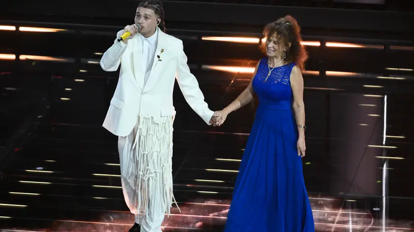(ANSA) - SANREMO, 01 MAR - Sayf in gara con il brano Tu mi piaci tanto scende in platea e prende per mano la mamma Samia seduta tra il pubblico. I due salgono assieme sul palco e a fine esbizione si abbracciano emozionati e sorridenti. La donna è stata fondamentale per trasmettere al figlio la passione per la musica. (ANSA).