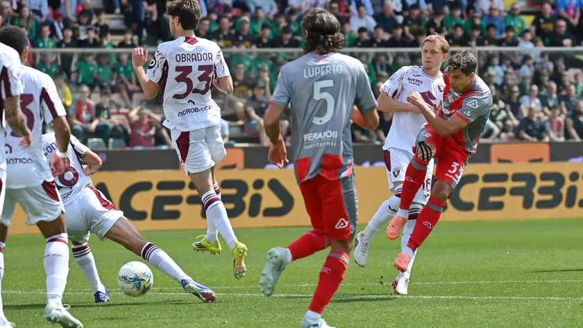 (ANSA) - CREMONA, 19 APR - La Cremonese e il Torino pareggiano 0-0 nel lunch match della 33/a giornata di serie A. Un risultato che non aiuta i lombardi, che con 28 punti vanno momentaneamente a +1 sul Lecce terz'ultimo, mentre porta i granata a quota 40. Ai grigiorossi è stato annullato un gol nella ripresa per un fallo di Baschirotto sul portiere Paleari, rilevato dall'arbitro con l'on field review. (ANSA).