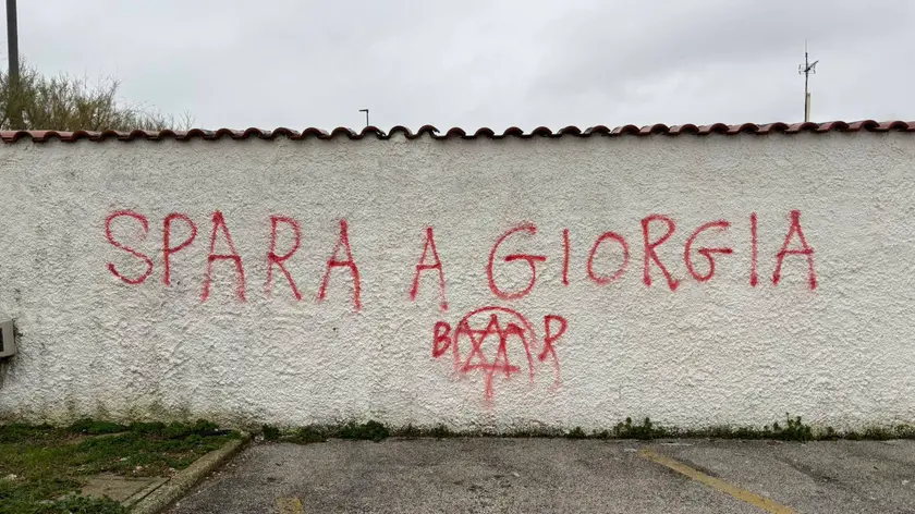 (ANSA) - PORTO RECANATI, 05 GEN - "Spara a Giorgia", accanto la sigla Br, intervallata da una stella a cinque punte. La scritta, vergata con vernice spray di colore rosso, è apparsa oggi sul muro di un parcheggio di un locale vicino al mare a Porto Recanati zona Scossicci (Macerata). Sull'episodio sta svolgendo accertamenti la Digos della Questura di Macerata per risalire all'autore. (ANSA).