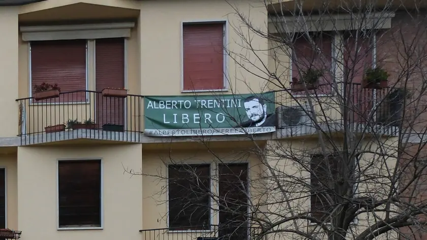 Lo striscione dei familiari in attesa della liberazione