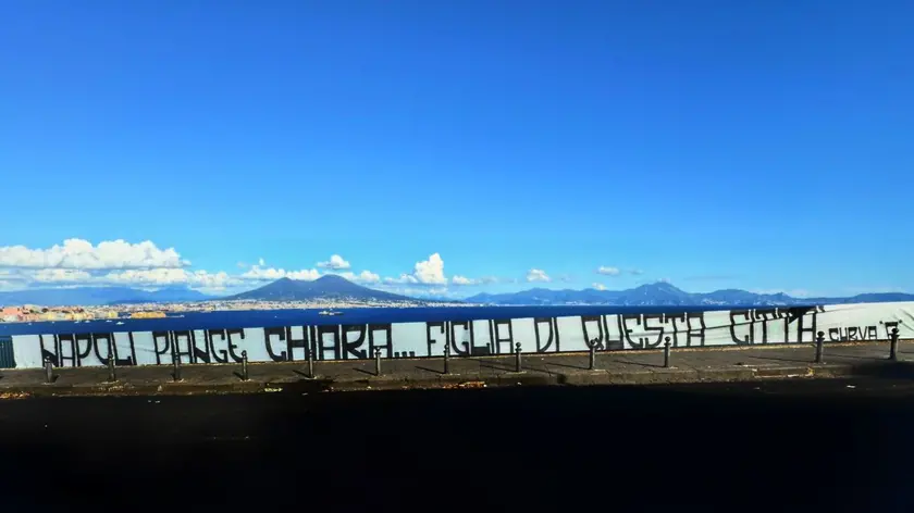 NAPOLI, 19 SET - Un lungo striscione è stato affisso nel pomeriggio di oggi sul lungomare di Napoli per ricordare Chiara, la giovane turista morta a seguito delle ferite riportate dopo essere stata colpita da un oggetto domenica scorsa ai Quartieri. Sullo striscione realizzato dai tifosi del Napoli - della curva A dello stadio Maradona - si legge: "Napoli piange Chiara... Figlia di questa città" (ANSA).