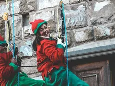 Sara Funaro si cala giù da Palazzo Vecchio con Babbo Natale