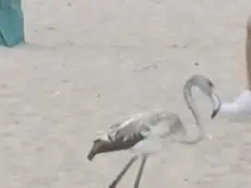 Fenicottero a passeggio sulla spiaggia di Senigallia