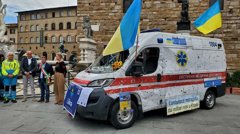 In mostra a Firenze ambulanza colpita dai russi in Ucraina
