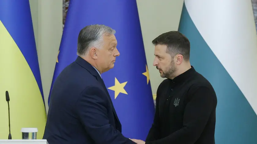 Zelensky al summit di Budapest, stretta di mano con Orban