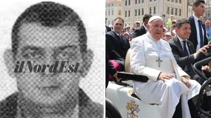 A sinistra Hasan Uzun, a destra Papa Francesco in piazza Unità a Trieste il 7 luglio 2024 (foto Lasorte)