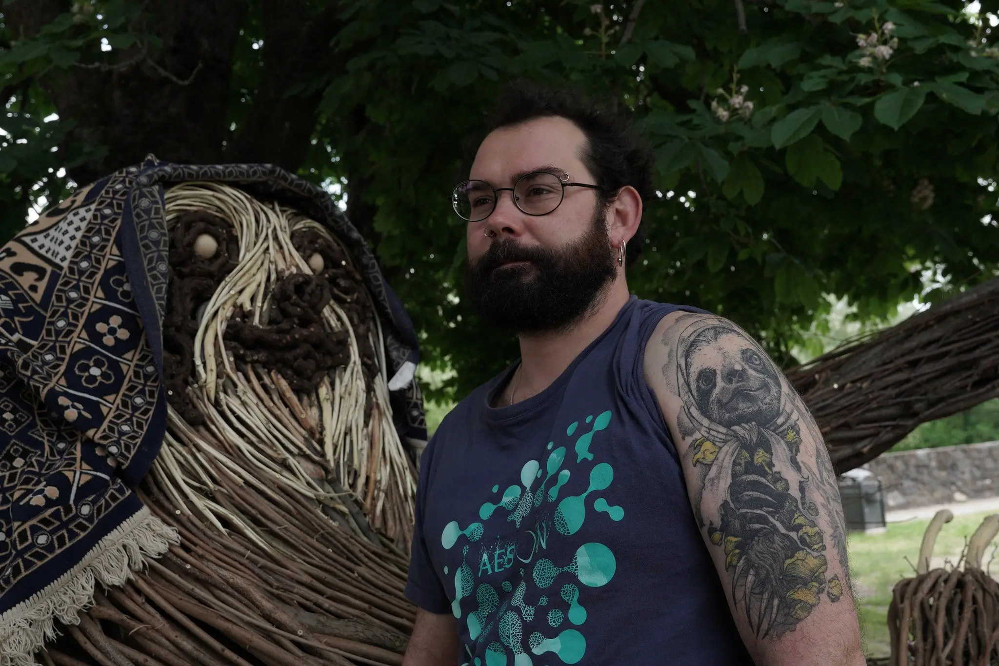Un bradipo l’ultima creazione a opera di Rodolfo Aliprandi: per relizzarla è stato impiegato il legno recuperato con la pulizia attorno le mura