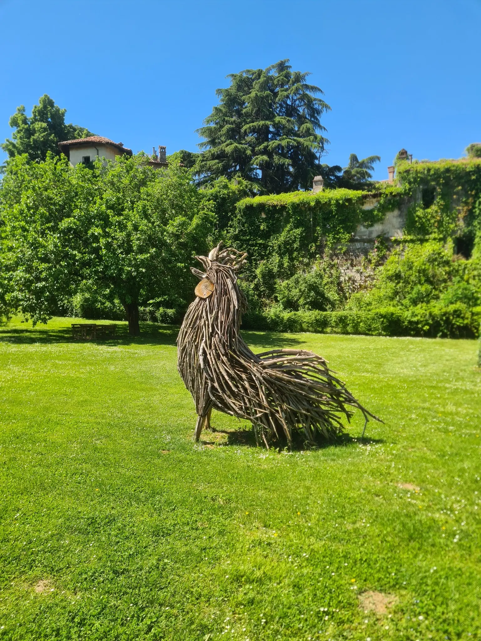 Un’altra parte però, ancora una volta, è stata impiegata per arricchire quello che ormai è un vero e proprio pantheon di creature immaginarie che fanno bella mostra di sé fra le mura e le zone fluviali. E così, negli anni erano via via comparsi dapprima un simpatico orso che vigila sul borgo del Salet, una gigantesca tartaruga che ha lottato strenuamente contro le piene del fiume, poi un mastodontico gallo che guarda alle mura del Castello.