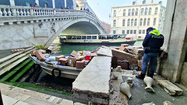 Il rumore sordo dell’impatto violento, le immagini dei telefonini che in pochi minuti fecero il giro dei social, la paura che in uno dei punti più affollati del Canal Grande potesse consumarsi una tragedia. Era iniziata così, con il tentato furto di un barcone e una corsa senza controllo finita contro la balaustra del Ponte di Rialto - andata in pezzi - una delle pagine più surreali della cronaca veneziana recente. Oggi quella vicenda trova un primo approdo giudiziario.
