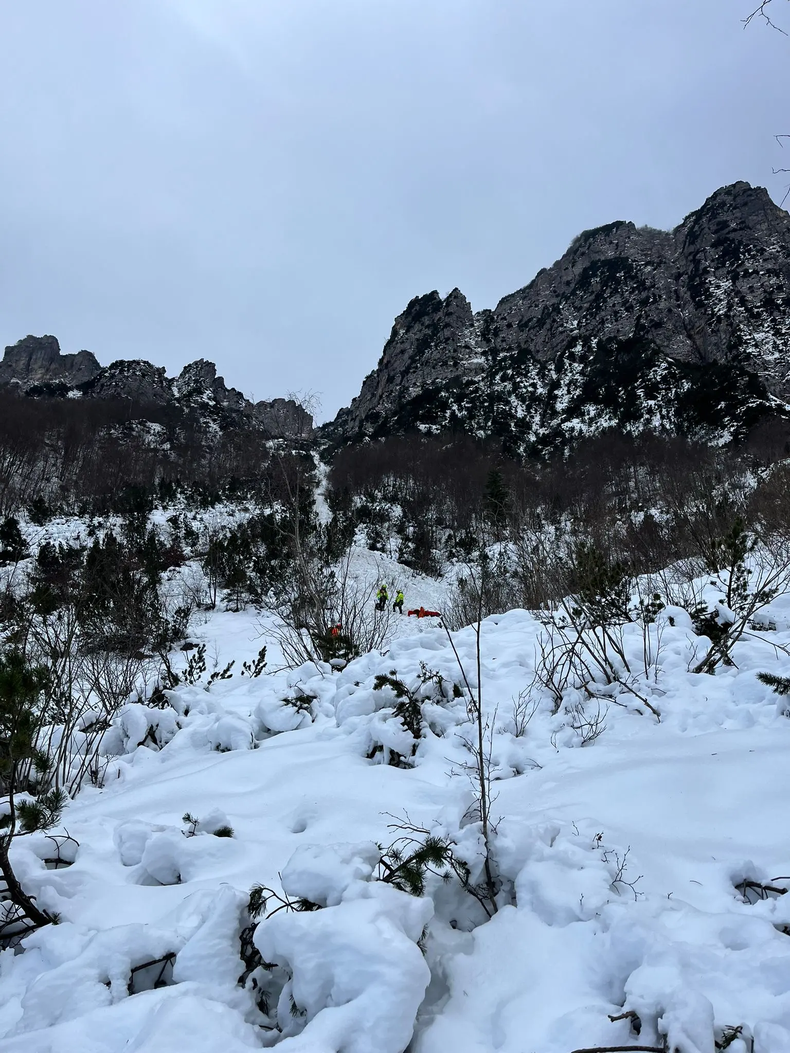 Alle 10.10 il Soccorso alpino di Recoaro-Valdagno è stato attivato dalla Centrale di Vicenza. Sul posto è intervenuto l’elicottero di Treviso Emergenza, mentre una squadra si è preparata a intervenire da terra. Le prime operazioni di perlustrazione sono state rese difficili dalle forti raffiche di vento. Un tecnico di elisoccorso, imbarcato sull’elicottero insieme all’équipe medica, è stato calato con un verricello di 70 metri per raggiungere l’alpinista e constatare le condizioni critiche dell’uomo. Contemporaneamente, una squadra partita in motoslitta da località La Gabiola ha raggiunto a piedi il luogo dell’incidente per riaccompagnare a valle l’amico.