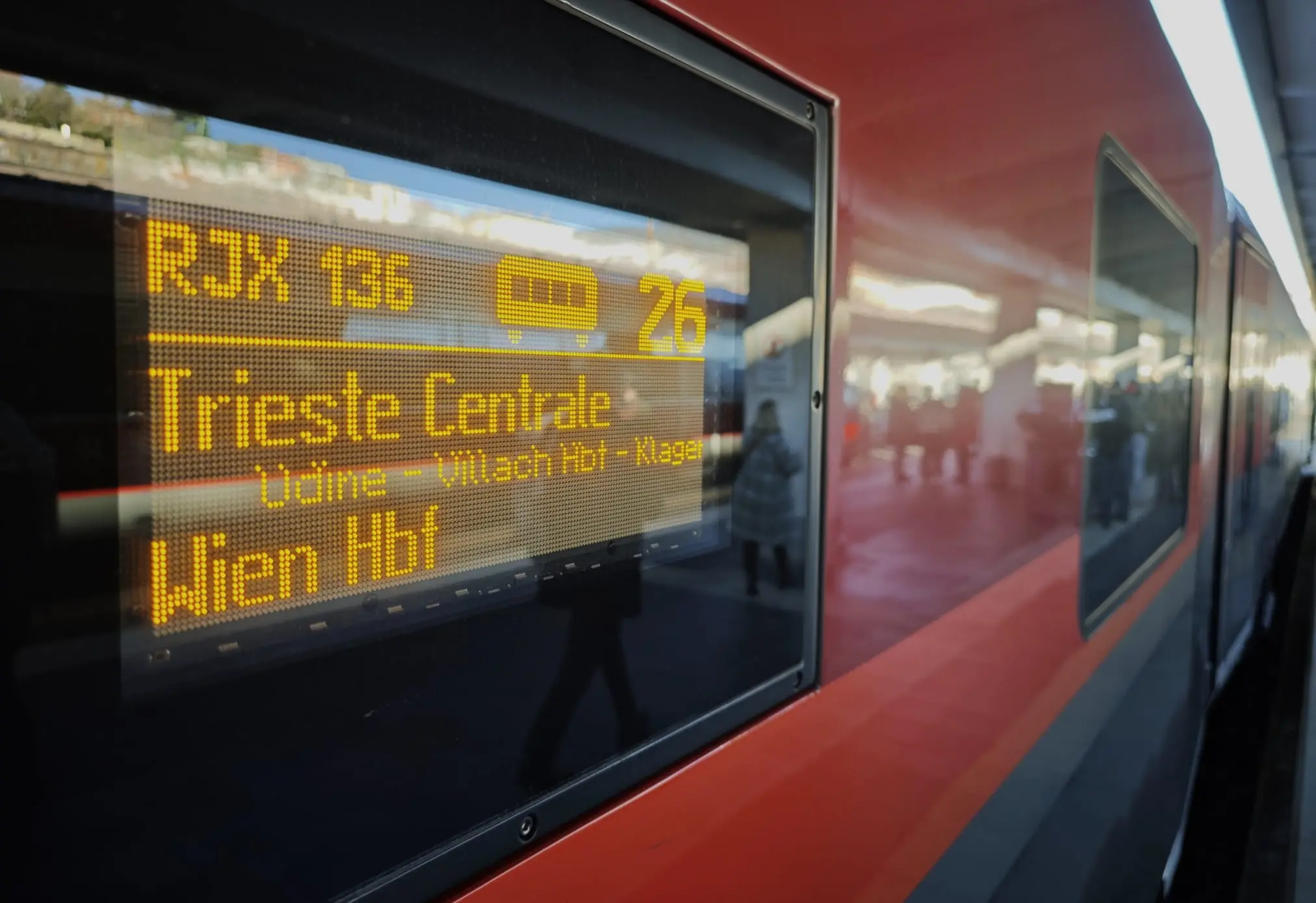 Il nuovo treno partirà da Trieste alle 14:22 dal lunedì al venerdì e alle 14:37 il sabato e la domenica. L’arrivo a Vienna è previsto alle 21:07 tutti i giorni. Dieci le fermate intermedie: Monfalcone, Trieste Airport, Cervignano-Aquileia-Grado, Udine, Tarvisio, Villach, Klagenfurt, Graz, Bruck an der Mur, Vienna Meidling.