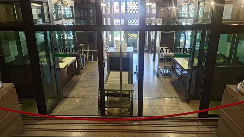 L’ingresso del Tribunale di Trieste con il metal detector