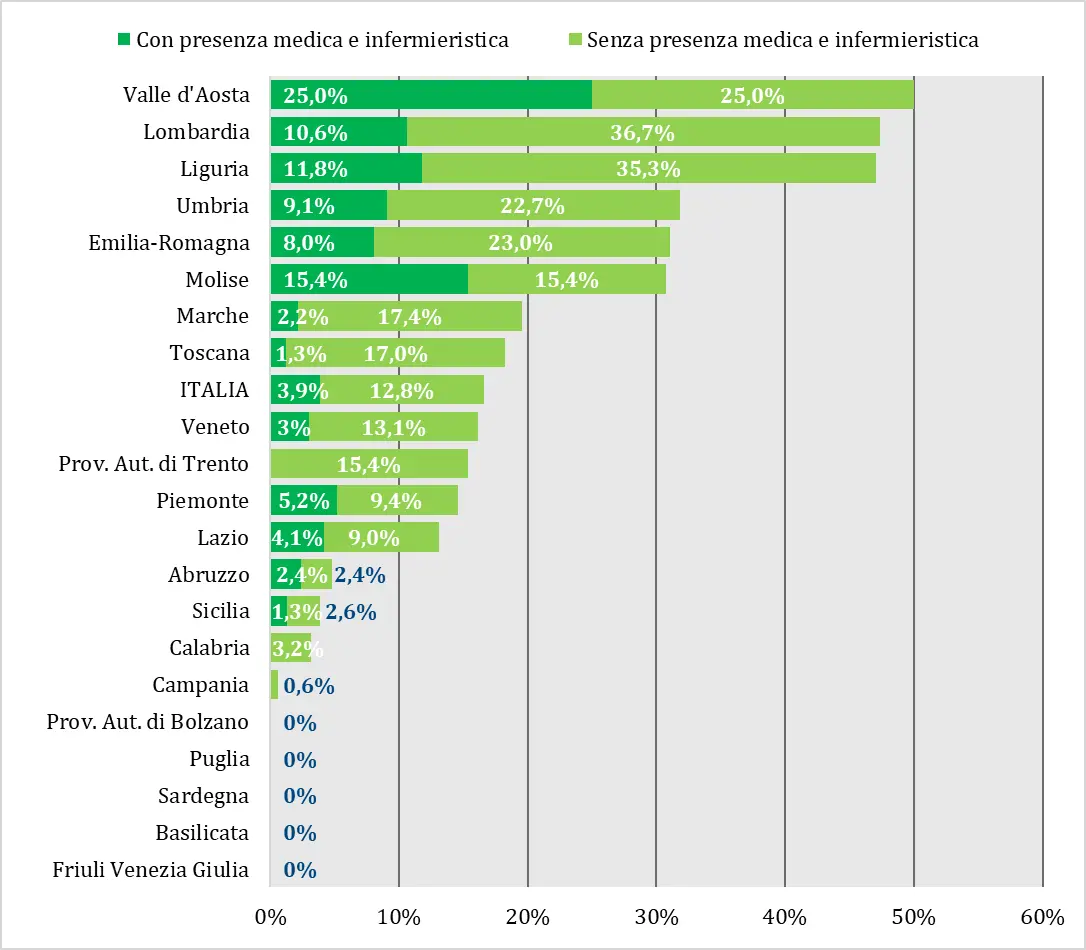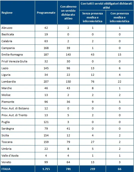 A pesare è soprattutto la carenza di personale sanitario. Anche dove i servizi sono stati formalmente attivati, la mancanza di medici e infermieri impedisce di garantire un funzionamento continuativo.