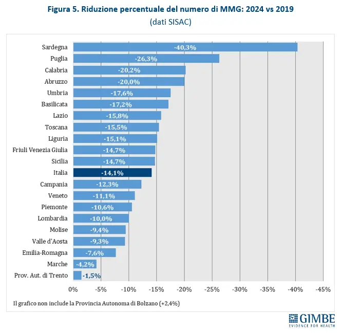 Tra il 2019 e il 2024, infatti, il numero dei medici di base in Italia è diminuito di oltre 5.000 unità, con un fabbisogno complessivo che supera oggi le 5.700 posizioni vacanti.