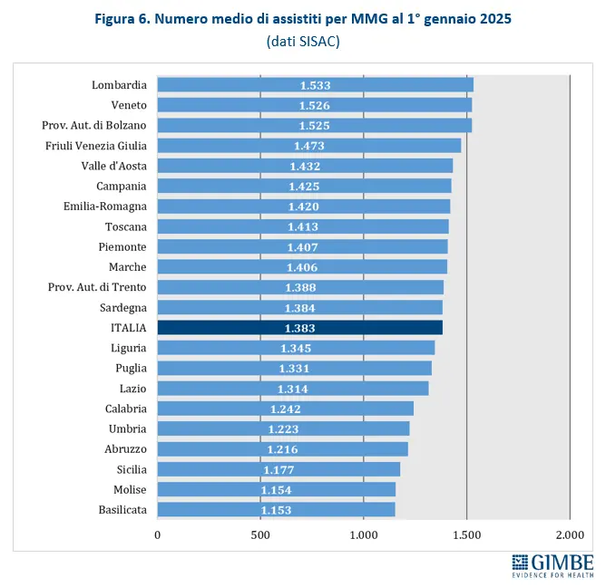 La pressione sugli studi dei medici è già molto alta. Ogni medico in Italia segue in media 1.383 assistiti, ben al di sopra del rapporto ritenuto ottimale di 1.200 pazienti per professionista.