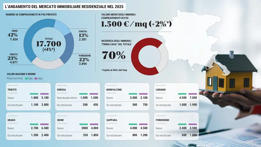 Accelera la ripresa del mercato immobiliare in Friuli Venezia Giulia: rispetto al 2024, l’anno in corso farà segnare un +4% per quanto riguarda il num