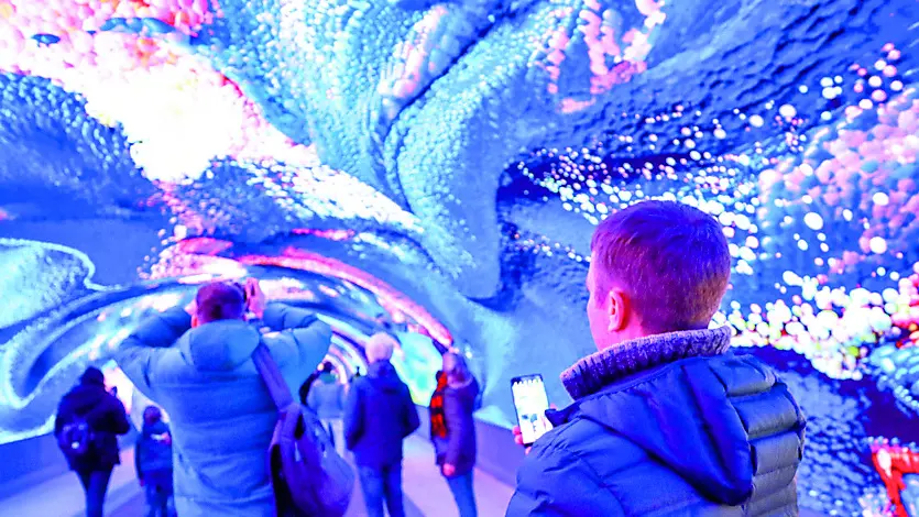 La Digital art gallery (Dag) con i tanti visitatori che al suo interno non esitano a scattare fotografie e realizzare. Foto Daniele Tibaldi