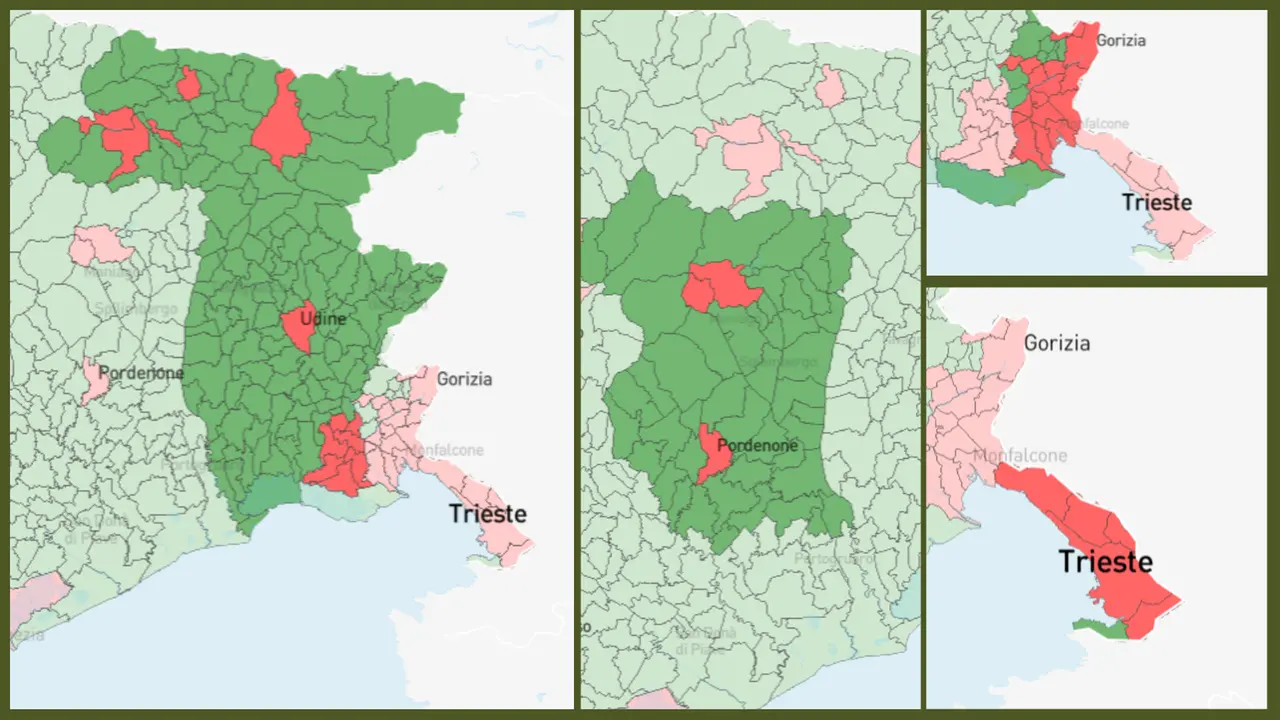 In provincia di Udine il Sì supera il 60% in settanta Comuni. Paularo svetta con il 74%, mentre Cimolais guida il Pordenonese con il 72,6%. Solo dodici i "fortini" del No in Friuli, concentrati nella Bassa