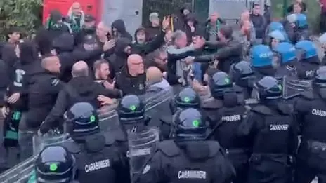 Anche in questo caso circolano almeno due video – già in mano alle forze dell’ordine – che documentano quanto accaduto: cioè i pordenonesi, alcuni dei quali con il volto coperto da sciarpe e la testa da cappucci, che tentano di sfondare il cordone di agenti e militari muniti di scudi e manganelli.