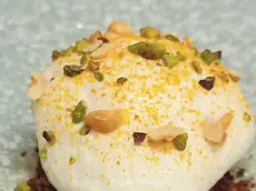 Ma non può nemmeno mancare il torrone che, nel consiglio dei nostri chef, si accompagna con una soffice spuma di mandorla, sorpresa di gelato al miele, frutta secca, streuzel al cioccolato e polvere d’arancia.