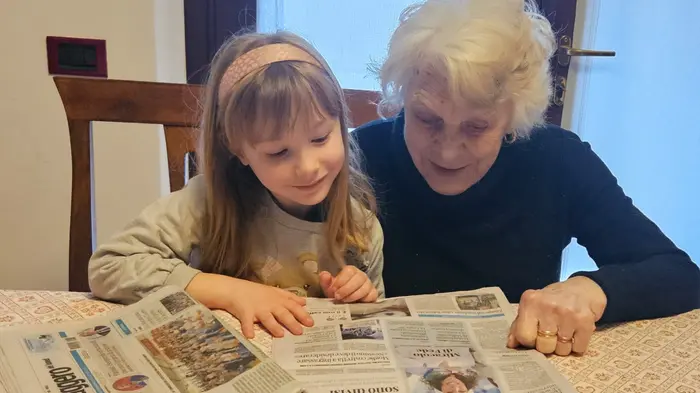 Legge, commenta, spiega ai nipoti. Non mancano le curiosità e, da tifosa convinta, le pagine sportive, dove va a caccia di notizie sull’Udinese. La politica la osserva con distacco, ma il territorio le interessa eccome: per Dora il giornale è una finestra sul mondo. Il suo rituale quotidiano è semplice quanto rigoroso: pranzo, dolce, Messaggero. Sfogliare, sottolineare mentalmente, tornare indietro su una notizia. «Leggere tiene allenata la testa», ripete. Forse è anche questo uno dei suoi piccoli segreti di longevità: la curiosità mai spenta. In famiglia, il rapporto con il giornale non si è mai interrotto. È passato dalla bottega al tavolo di casa, dalle chiacchiere con i clienti alla lettura ad alta voce con figli e nipoti. A quasi cent’anni, Dora continua a voltare pagina con la stessa energia di un tempo. E ogni giorno, tra una notizia e un sorriso, dimostra che informarsi non è solo un gesto: è un modo per restare vivi e condividere il tempo con chi si ama.