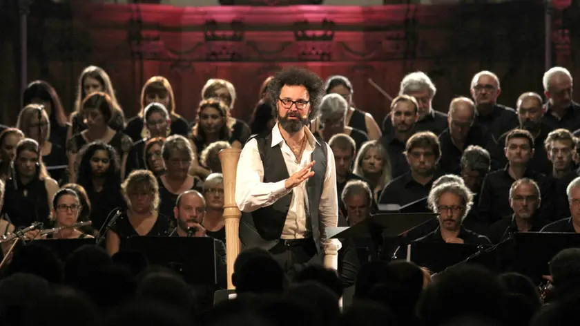 GEMONA. Commozione e lacrime, nel duomo di Santa maria Assunta a Gemona, per lo spettacolo “Orcolat '76”, l'Orco che divora la terra, con Simone Cristicchi e Francesca Gallo, accompagnati dalla Mitteleuropa Orchestra diretta dal M. Valter Sivilotti e dal Coro del Fvg diretto dal M. Cristiano Dell'Oste.