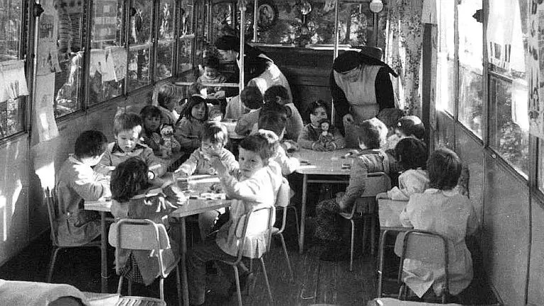 «A noi stava a cuore riprendere l'attività pedagogica», ricorda suor Teresa Miconi, allora braccio destro di madre Agnese e ancora oggi all'Istituto. «Unimmo i due bus come fossero due casette, connesse da una tettoia in legno - racconta - realizzata per noi da un falegname per ripararsi dalle piogge. Smontammo tutti i sedili, pulimmo la nafta. Due giorni di lavoro incessante, a contatto con lisoformio e varichina le maniche delle nostre vesti erano da gettare via».