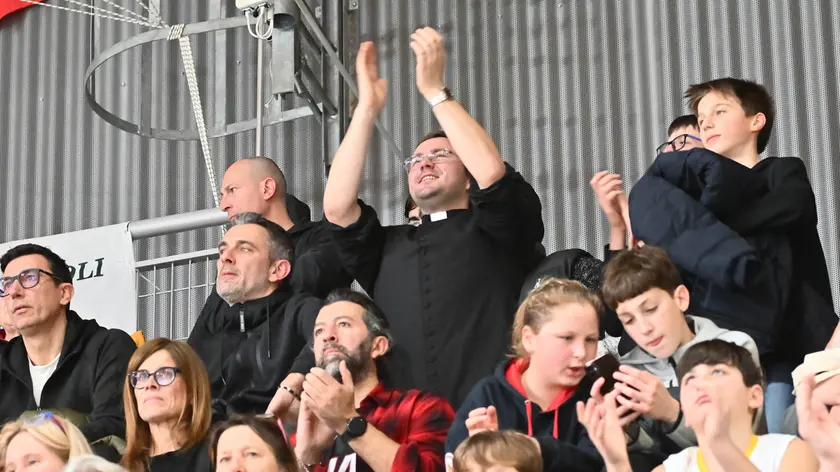 Ci sono storie un po’ speciali, che rendono meno amaro persino un ko in volata. Cividale è uscita sconfitta dal partidazo contro la capolista Pesaro, ma ha regalato al suo pubblico un’altra serata di festa collettiva. Sugli spalti a fare il tifo c’era anche Don Alessandro Fontaine, parroco coordinatore della Collaborazione Pastorale di San Pietro al Natisone, che con il sorriso, tra italiano e friulano, ci ha raccontato una prospettiva inedita sui successi dei ducali. «Qualcuno nel vedermi pensava fosse uno scherzo di Carnevale – ha esordito– ma non era la prima volta per me al PalaGesteco. Sono stati i miei parrocchiani a invitarmi a vedere una partita, anche se non ricordo quale, ormai due anni fa».