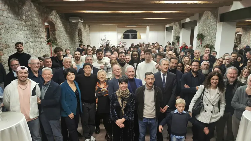 L’abbraccio dei tifosi è la miglior terapia per dimenticare la fatica e prepararsi agli impegni incombenti. Ieri sera la Gesteco Cividale ha festeggiato il Natale e l’anno solare ormai al tramonto assieme alla propria gente, nella splendida cornice di Villa De Claricini Dornpacher ormai sede abituale dei ritrovi dei gialloblù.