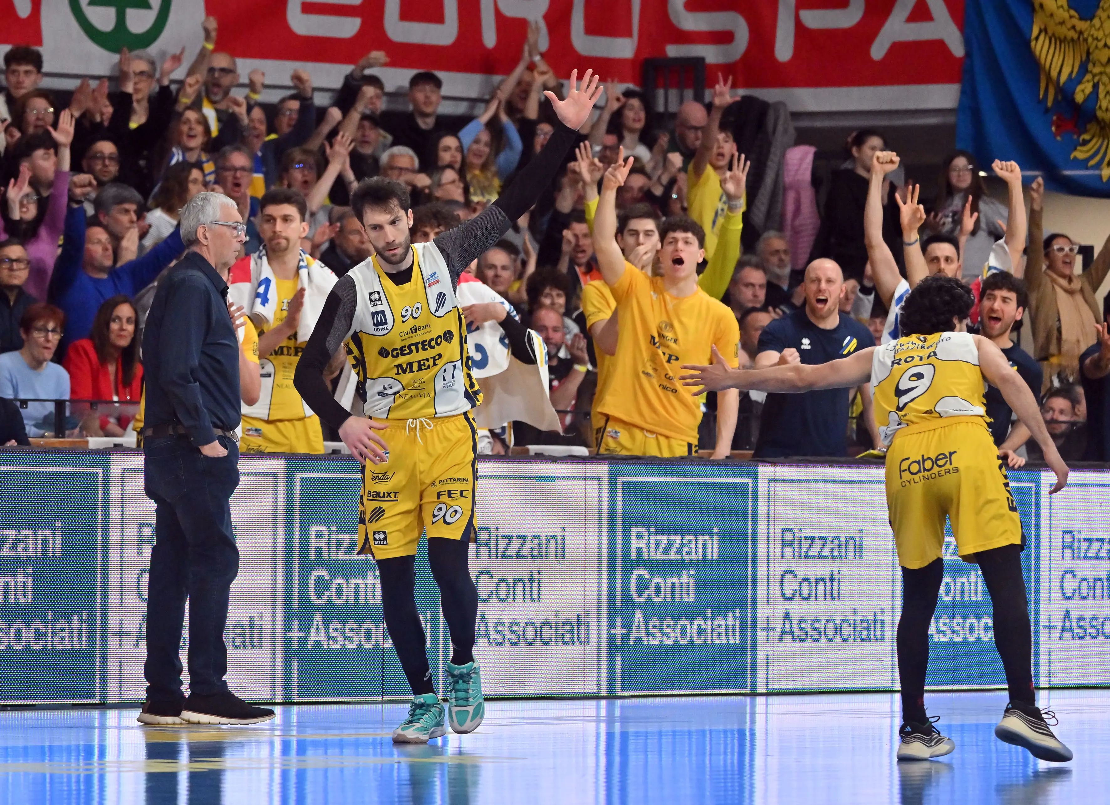 Le percentuali ora premiano le squadre e Marangon fa 40-36 dall’arco (6/24 per i ducali), incendiando il PalaGesteco. Dopo i liberi di Freeman è massimo vantaggio Ueb a +6, ma Perkovic e Sorokas nel finale accorciano fino al 45-44. Nell’ultimo quarto Pillastrini scongela Mastellari, servito alla grande da Redivo per il nuovo +6. La Effe ora fatica, le due palle perse consecutive sono indicative.