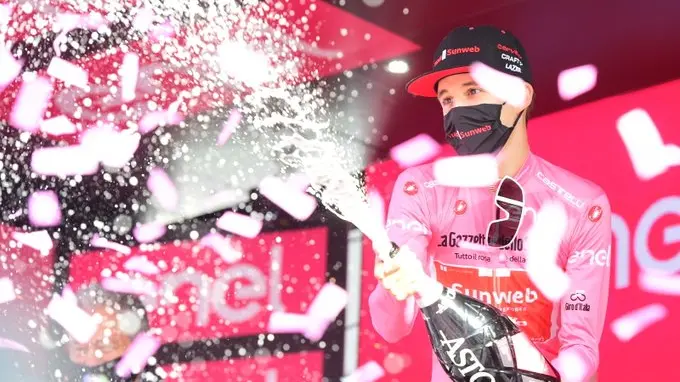 SESTRIERE. Una sfida all’ultimo secondo, pazzesca, in una Milano blindata causa Covid. Jai Hindley (Sunweb), la nuova maglia rosa, partirà nella crono finale per ultimo, ma con lo stesso tempo di Teo Geoghegan Hart (Ineos), che l’ha battuto allo sprint al Sestriere al termine di un duello da brividi, riscatto (parziale s’intende) dopo l’ammutinamento dei corridori di venerdì.