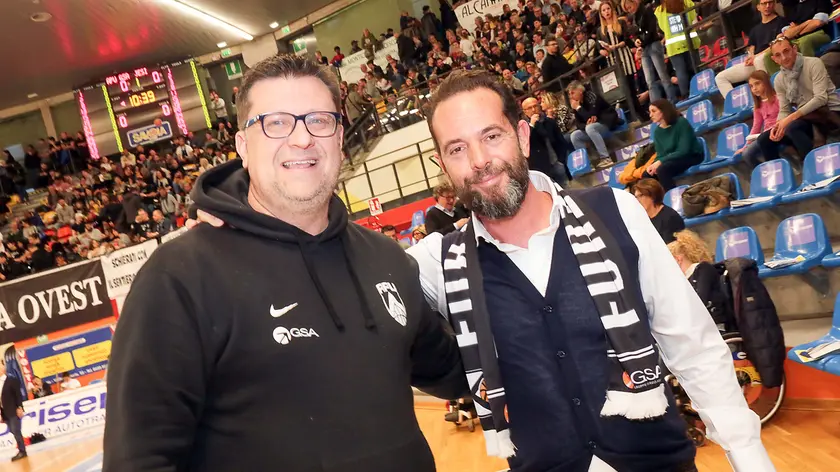 Miccalich e Pedone ai tempi felici dell'Apu: ora i due sono rivali in Serie A2 con Cividale e Udine