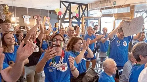 Festa grande al bar “Da Ugo” a Buja dove amici, parenti e tantissimi fan sono arrivati per guardare la gara del loro beniamino